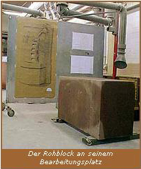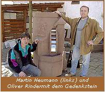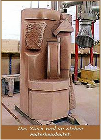 Er hat schon den oben erwähnten Wasserturm bearbeitet und den Mühlengedenkstein selbstständig („mit gestalterischen Ratschlägen vom Chef“) entworfen und bearbeitet. In der Steinbildhauerei Rinder werden viele solcher schönen Stücke gefertigt und deshalb ist der in letzter Zeit vielgelobte Stein auch für Martin Neumann „nichts Herausragendes“.
