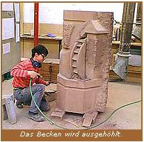 Der 33jährige arbeitete aus einem Stück rotem Eifeler Sandstein (Entwurf und Vorarbeit nicht eingerechnet) mehr als 120 Stunden an diesem Schmuckstück, das er als Meisterstück fertigte.