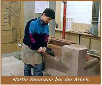 Der frisch gebackene Steinmetz- und Steinbildhauermeister ist seit 1995 bei der Firma Rinder beschäftigt und die Arbeit hier macht ihm nach eigener Aussage sehr viel Spaß.